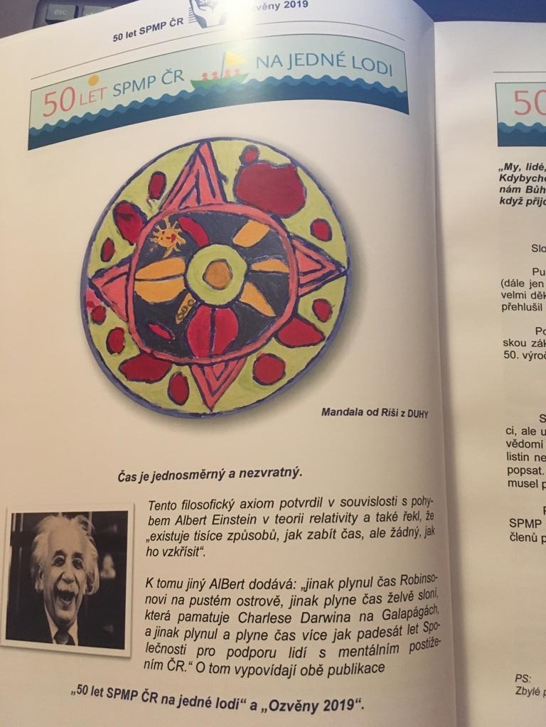 Jsme hrdí na Mandalu Richarda Kučery – jednoho z malířů Centra denních služeb -, která zdobí publikaci ke kulatému výročí