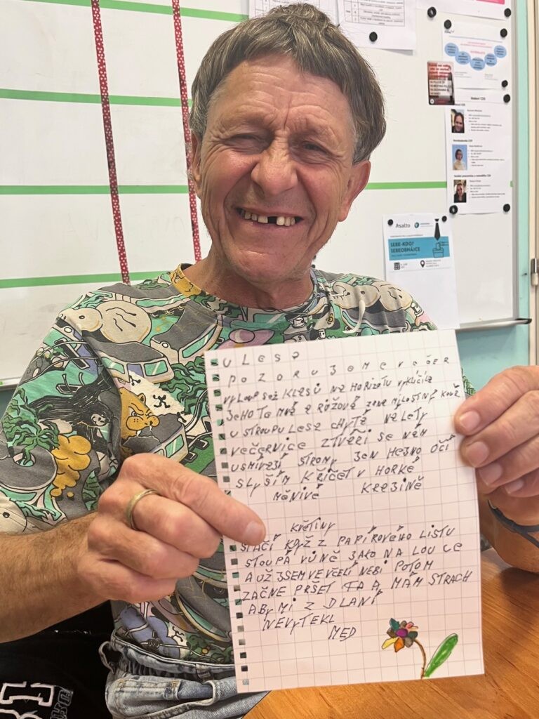 Radim Hostomský, muž s krásným úsměvem, klient Společnosti DUHA a autor nádherných obrazů v projektu Novoročenky pomáhají, oslaví v červenci