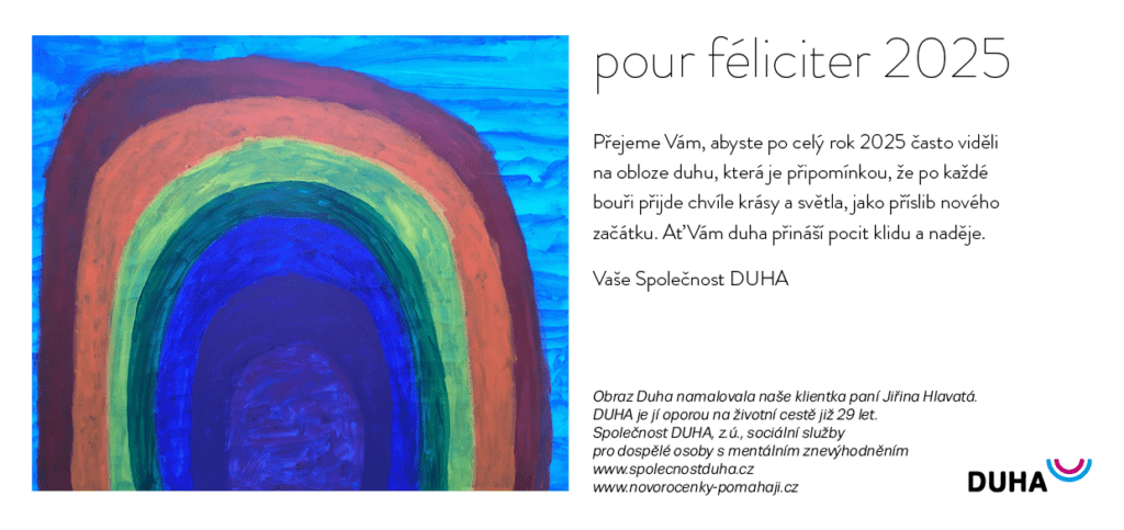 Společnosti DUHA a jejím klientům pomohli letos dárci rekordní částkou 330 000 Kč. Děkujeme! Už 12 let pomáhají novoročenky vytvořené z