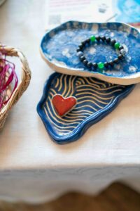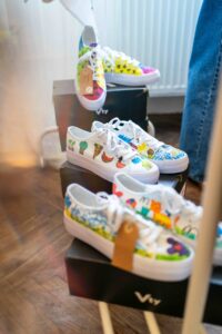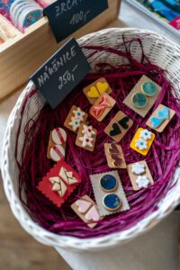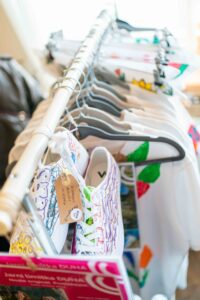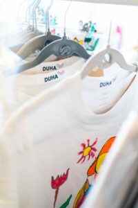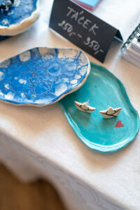 Kromě štendrů s oblečením se návštěvníci zastavovali také u stánku Společnosti DUHA. Zaujaly je originální výrobky klientů z ateliérů Center denních služeb – náušnice, brože, keramické tácky na šperky nebo vonné svíčky.  Zájem byl i o Jarní limitku DUHA. Šátky, tenisky i trička si našly nové majitele a už dělají radost dál.