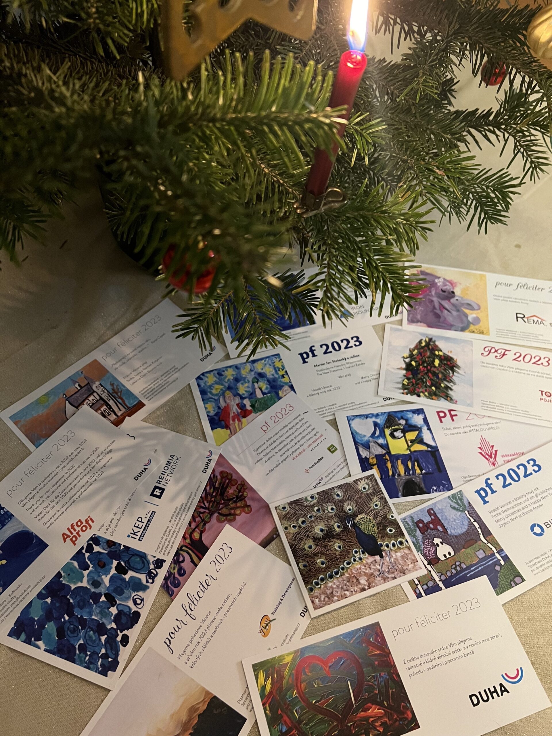 Další stovky novoročních přání, které zdobily obrazy namalované klienty Společnosti DUHA, se rozlétly do světa. Za 10 let projektu jich byly už tisíce – poštou nebo mailem. A vždy, kromě osobních přání dárců – firem i jednotlivců, posílají do světa i informaci o Společnosti DUHA a jejích klientech, jejich talentu a originálním pohledu na svět.