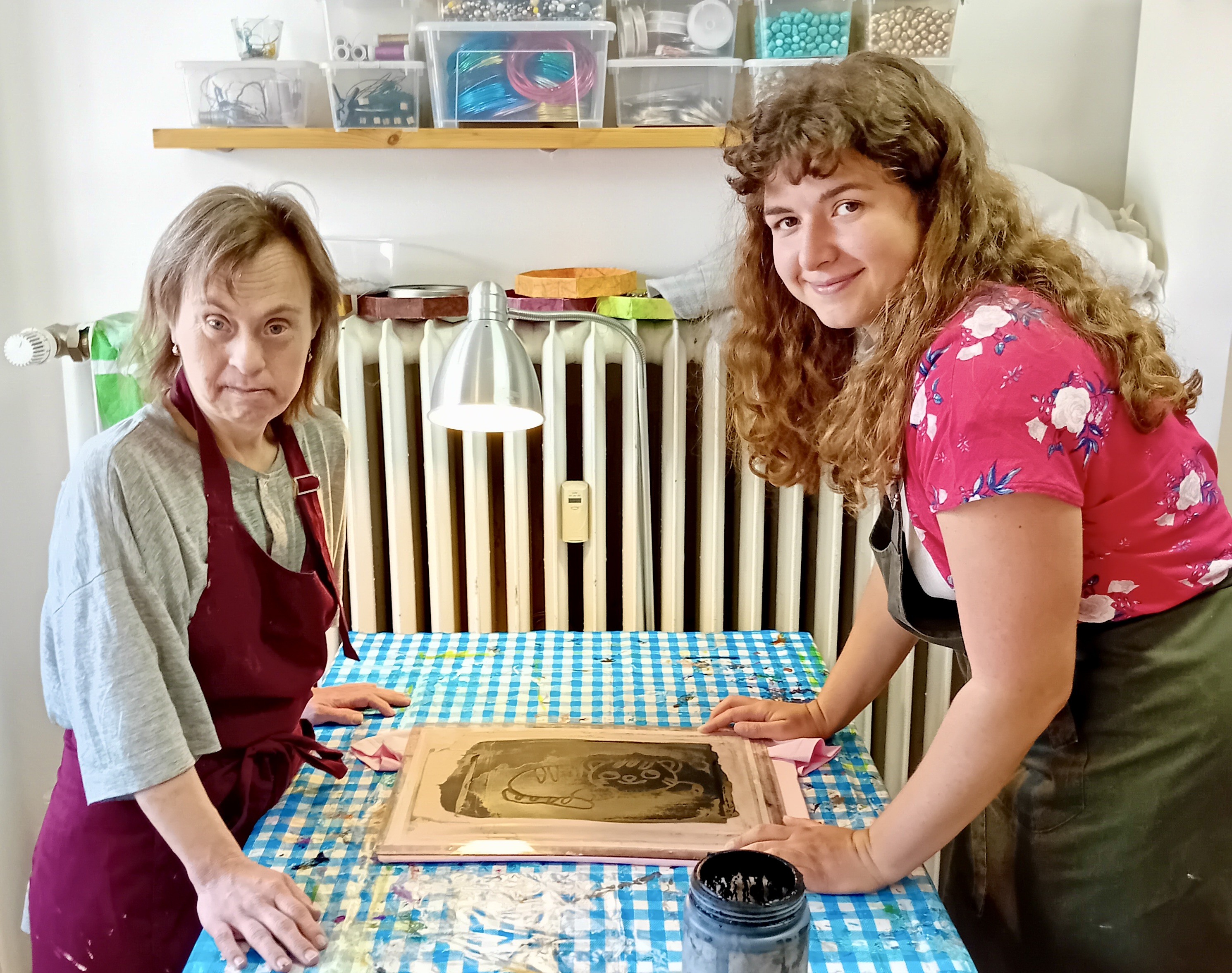 Klienti v CDS Galerie Duhovka mají pestrý program, jehož součástí jsou, kromě jiného, i kreativní činnosti a získávání a udržování pracovních návyků. Na sítotisku vytvářejí pěkné kousky už několik let. Jsou to například tašky, plakátky z projektu Umělci DUZE. Najdete na charitativním e-shopu Společnosti DUHA. Svým nákupem můžete potěšit autory, dospělé lidi s mentálním znevýhodněním i Vy. Děkujeme.