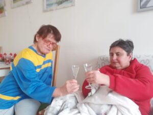 Když si ve sváteční den připiju na zdraví se svojí kamarádkou a spolubydlící v chráněném bytě.