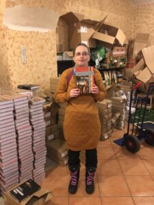 Zuzka nás provádí celým pracovištěm a sama popisuje, co dělá: „Knihy zabalím do fólie, pak do kartonu, nosím je na poštu, do Zásilkovny.“ Cestuje s nimi do různých knihkupectví po Praze, trasy se s pomocí kolegů z nakladatelství Dokořán naučila.